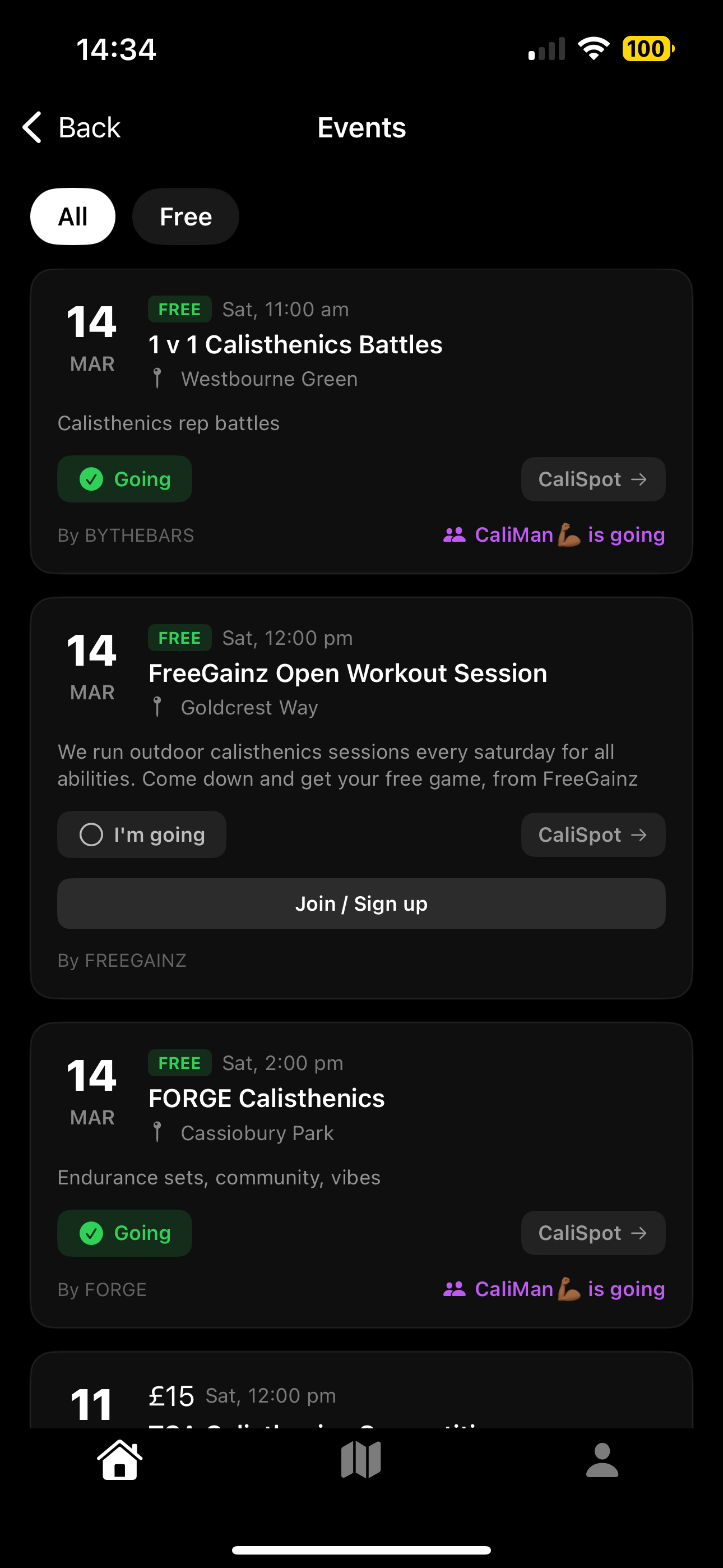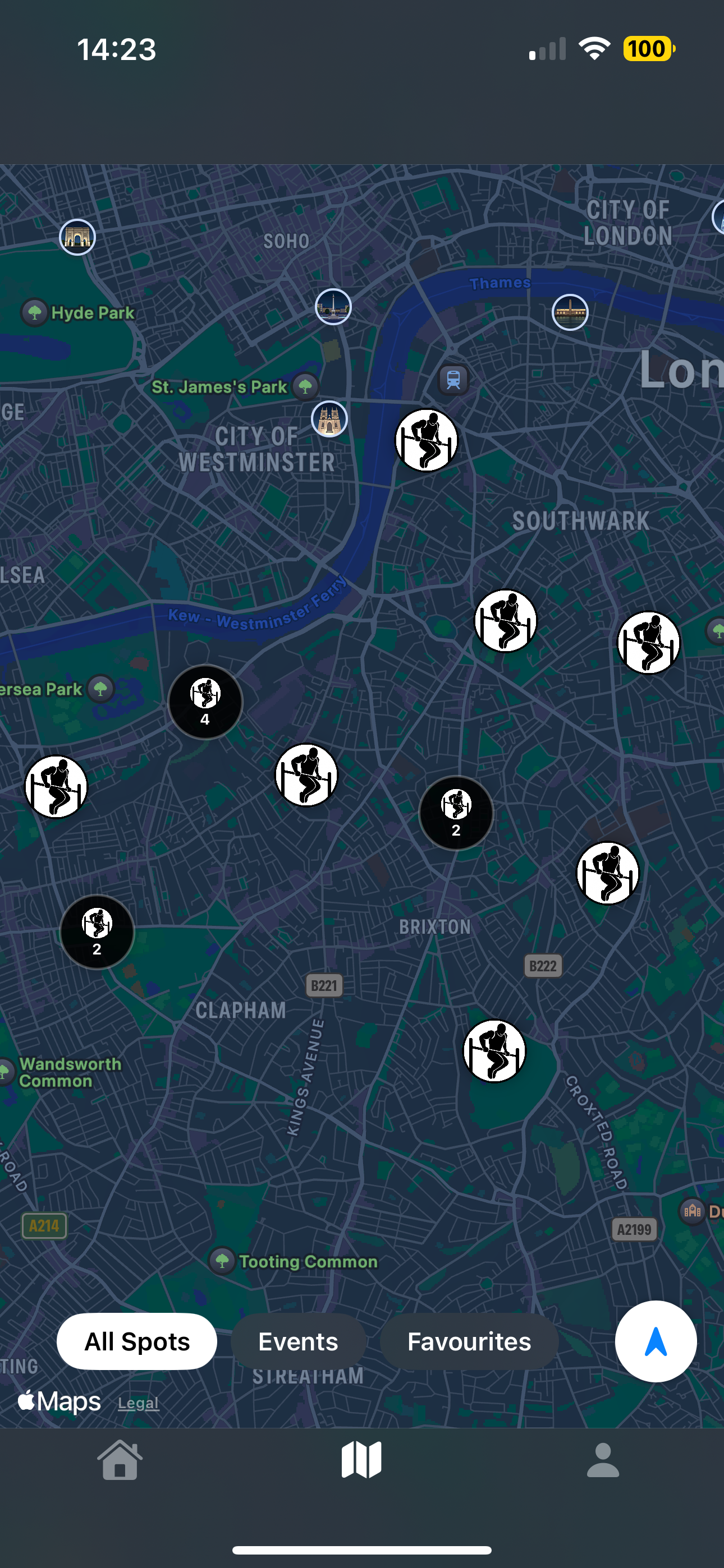 Every outdoor calisthenics park in London, mapped and rated. Real photos. Live check-ins. Zero ads.